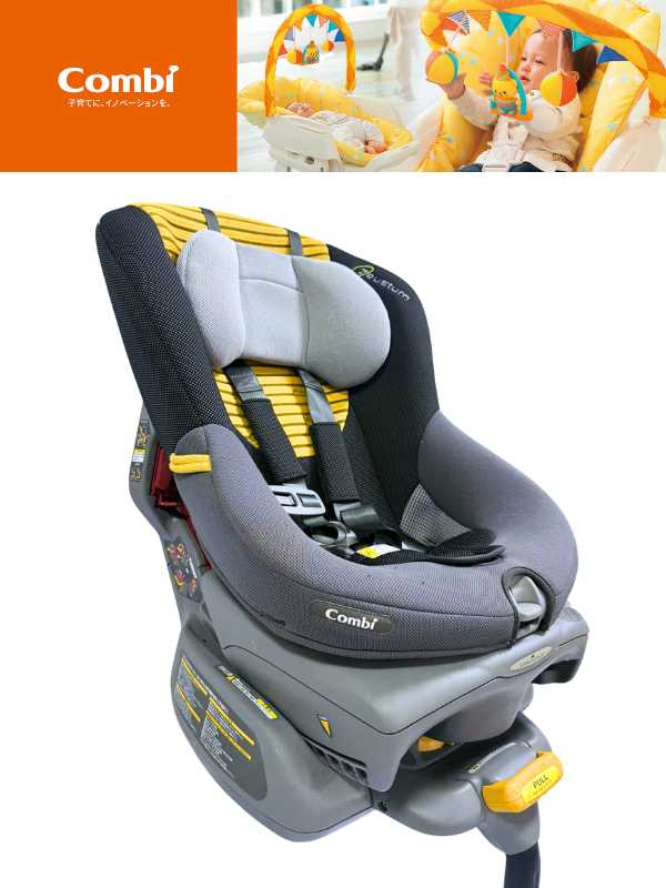 คาร์ซีท Combi (คอมบิ) รุ่น Zeus Turn เบาะเทา/ดำ รุ่นนี้ไม่มีเข็มขัดนิรภัยของรถมาเกะกะเวลาล็อค หมุนได้ 360 องศา